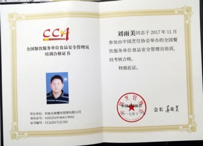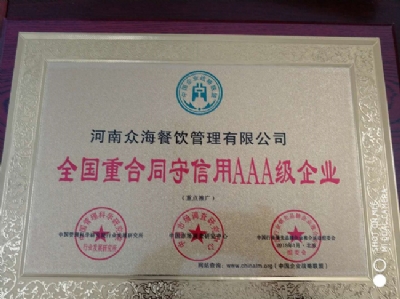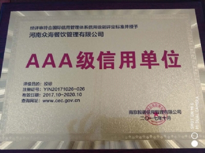 • 18-02-10熱烈祝賀河南眾海餐飲管理有限公司榮獲河南餐飲與飯店協(xié)會團餐委